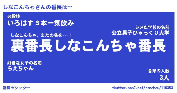 | 肩書あだ名 | 『しなこんちゃ社長』『しなこんちゃ班長』 |