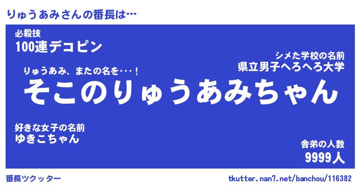 | ヘコむあだ名 | 『りゅにゅー』『豆乳』『りゅお』 |