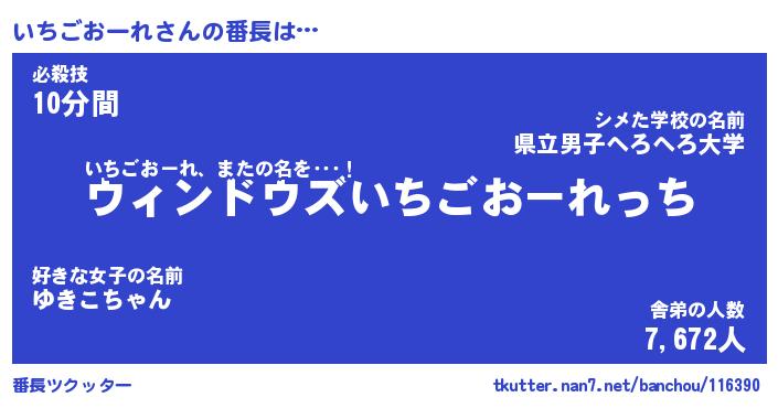 | ヒーロー風カッコイイあだ名 | 『スーパーイチゴオーレ』『魔戒騎士イチ』 |