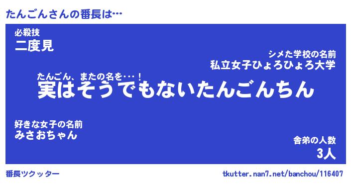 | 2回繰り返すあだ名 | 『たんたん』『たたんん』『おやおや』 |