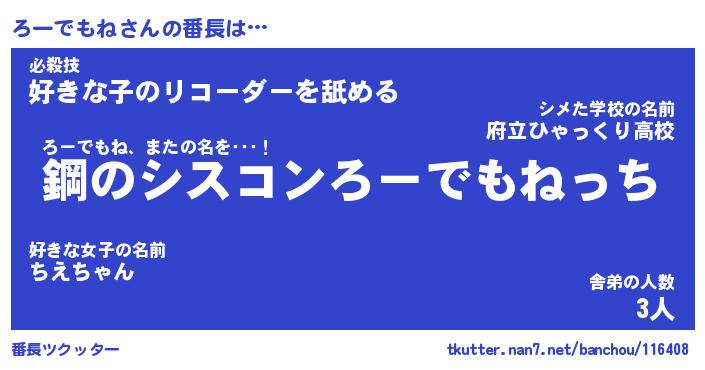 | ヘコむあだ名 | 『ろーふぇ~』『なまこ酢』 |