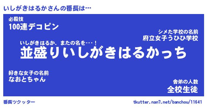| 男性向けラノベタイトル風あだ名 | 『いしがきはるかの憂鬱』 |