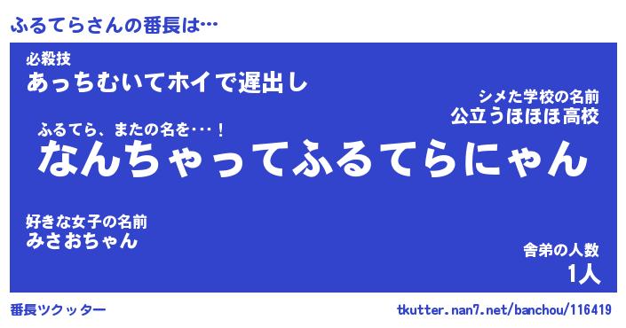 | 意味不明あだ名 | 『ペロリンふるてら』『永久保存ふるてら』 |