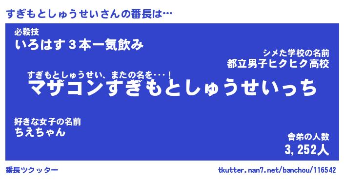 | 意味不明あだ名 | 『ペロリンすぎもとしゅうせい』 |