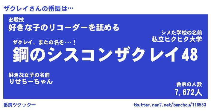 | ファンタジー風あだ名 | 『ザクフェル』『エターナルザクレイー』 |
