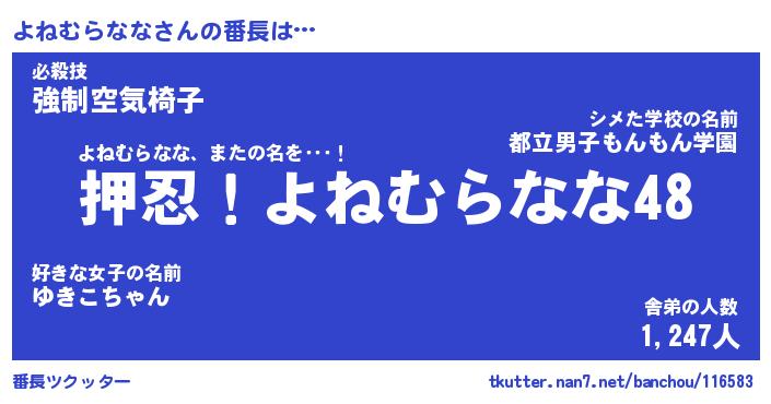 | 肩書あだ名 | 『よねむらなな店長』『よねむらなな班長』 |