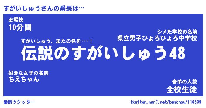 | 肩書あだ名 | 『すがいしゅうCEO』『すがいしゅう大統領』 |