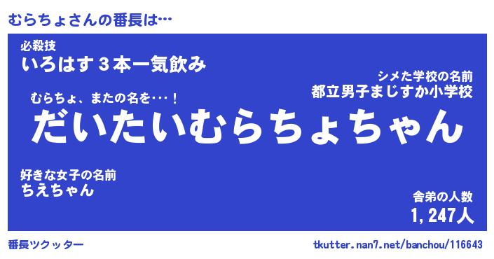 | ヒーロー風カッコイイあだ名 | 『スーパームラチョ』『銀牙騎士ムラ』 |