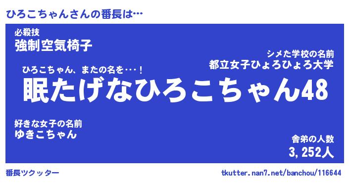 | ピコ太郎風あだ名 | 『ヒコ六郎』『ピヒ八郎』『ヒロ次郎』 |
