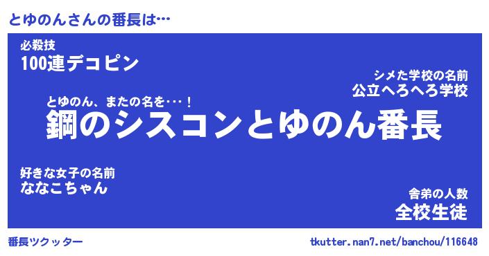 | 肩書あだ名 | 『とゆのん店長』『とゆのん国家主席』 |
