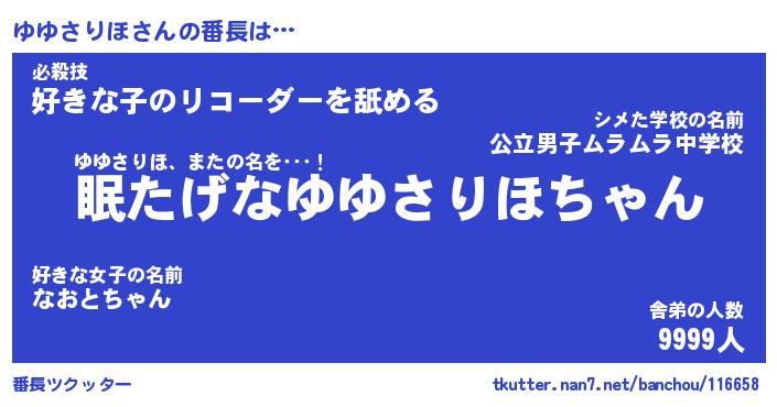 | 2回繰り返すあだ名 | 『ゆゆゆゆ』『ゆゆゆゆ』『ぬぷぬぷ』 |