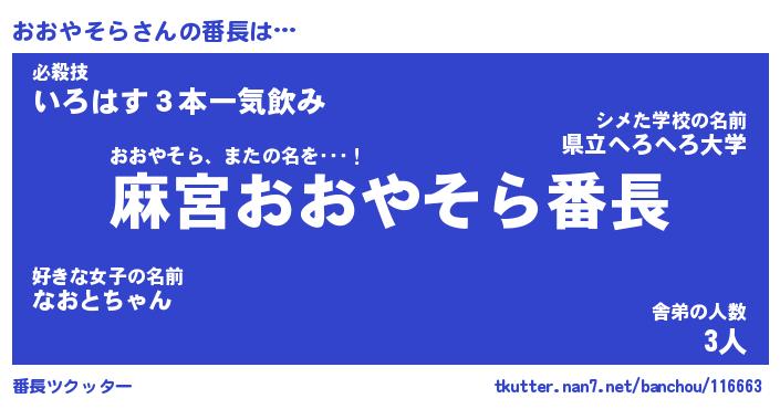 | 欧米人風あだ名 | 『マイケルおおやそら』 |