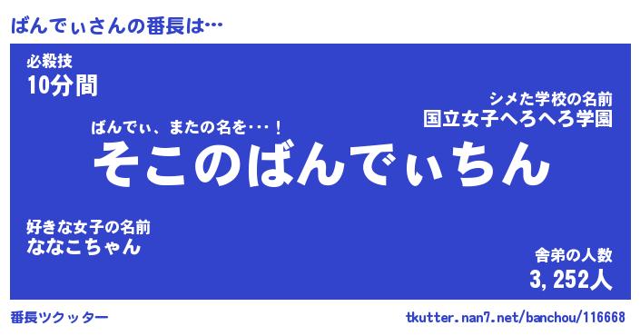 | 肩書あだ名 | 『ばんでぃ社長』『ばんでぃ国家主席』 |