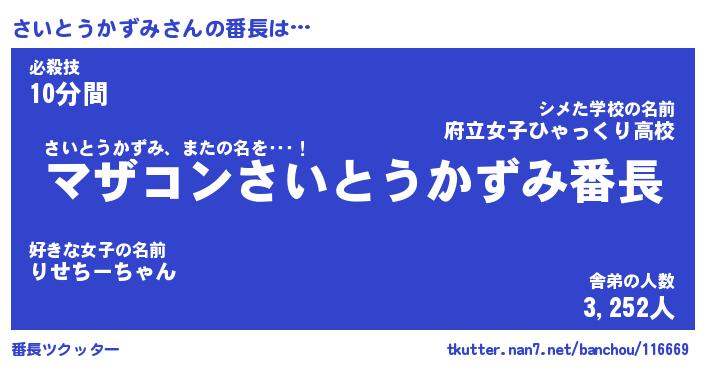 | 伝説のあだ名 | 『封印されし竜騎士さいとうかずみ』 |