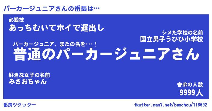 | 恥ずかしいあだ名 | 『プリティーパーカージュニア』 |