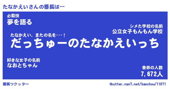 | ファンタジー風あだ名 | 『タナフェル』『エターナルタナカエイー』 |