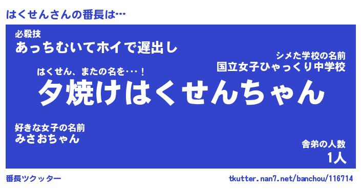 | ヒーロー風カッコイイあだ名 | 『スーパーハクセン』『黄金騎士ハク』 |