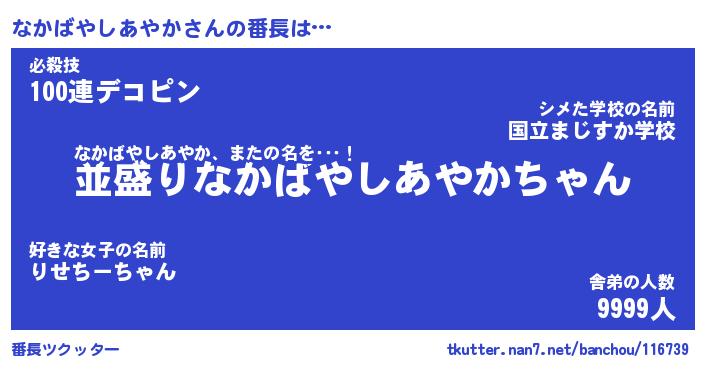 | ヒーロー風カッコイイあだ名 | 『スーパーナカバヤシアヤカ』 |