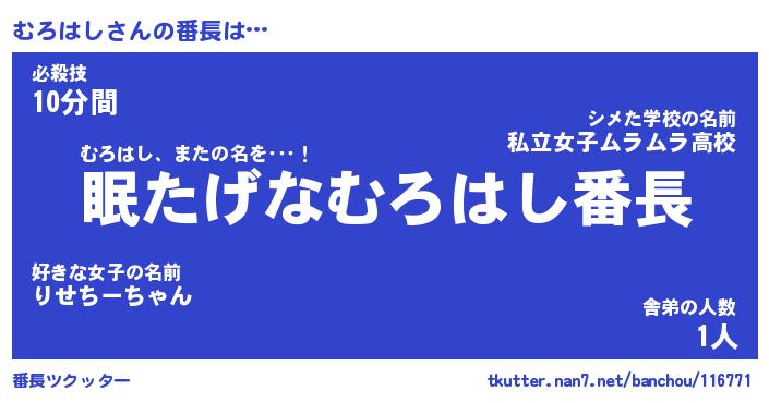 | 2回繰り返すあだ名 | 『むろむろ』『むむろろ』『あんあん』 |
