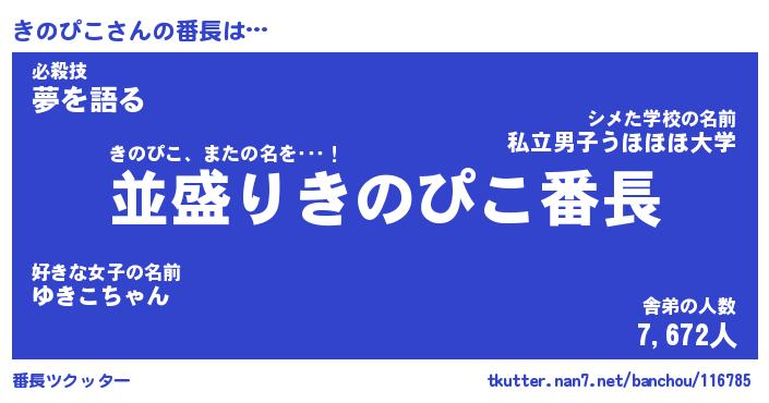 | 意味不明あだ名 | 『ペロリンきのぴこ』『永久保存きのぴこ』 |