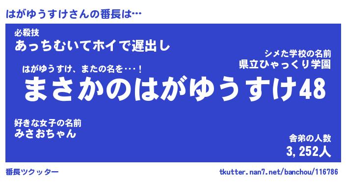 | ヒーロー風カッコイイあだ名 | 『スーパーハガユウスケ』『幻影騎士ハガ』 |
