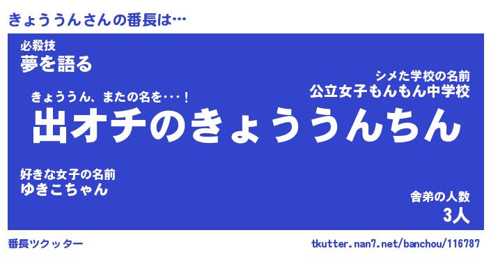| ピコ太郎風あだ名 | 『キコ一郎』『ピキ史郎』『キョ次郎』 |