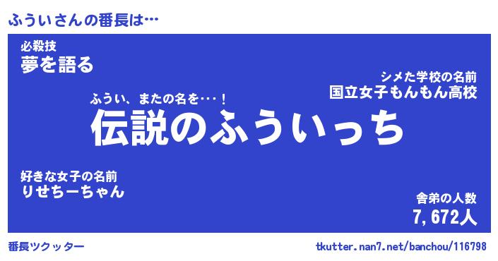 | ヒーロー風カッコイイあだ名 | 『スーパーフウイ』『ウルトラふういマン』 |