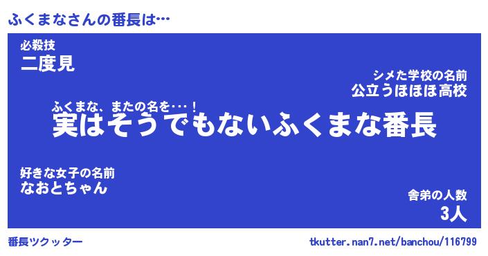 | ポケモン風あだ名 | 『フクチュウ』『フクマダネ』 |