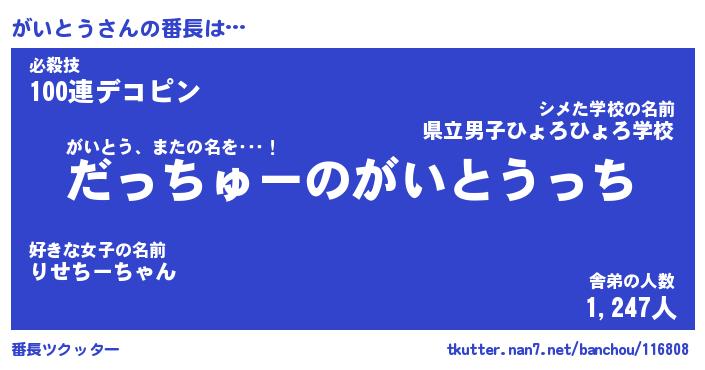 | 肩書あだ名 | 『がいとう社長』『がいとう大統領』 |