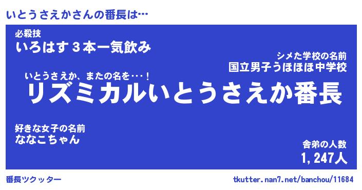 | ヒーロー風カッコイイあだ名 | 『スーパーイトウサエカ』『銀牙騎士イト』 |