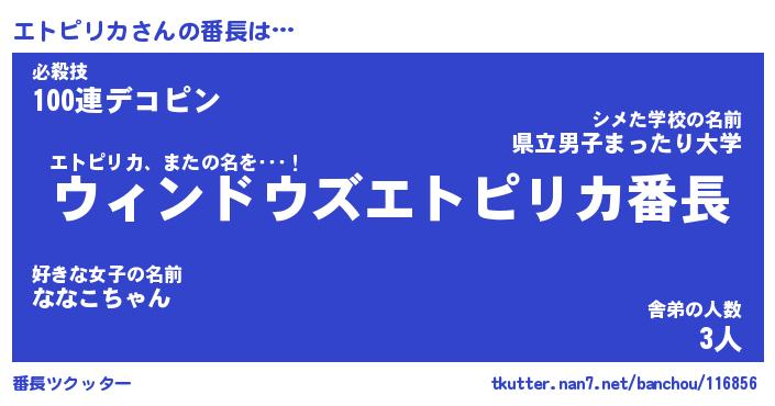 | ファンタジー風あだ名 | 『エトフェル』『エターナルエトピリカー』 |