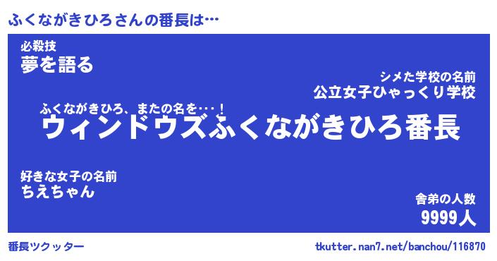 | ヒーロー風カッコイイあだ名 | 『スーパーフクナガキヒロ』 |