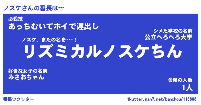 | 意味不明あだ名 | 『ペロリンノスケ』『ノスケフォーエバー』 |