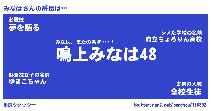| ヒーロー風カッコイイあだ名 | 『スーパーミナハ』『ウルトラみなはマン』 |