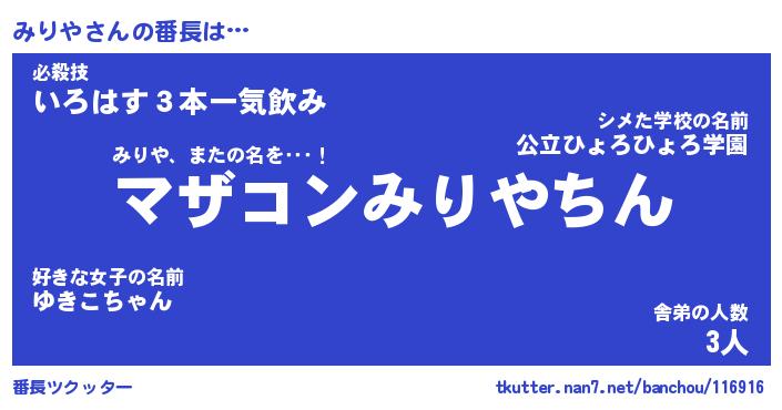 | 肩書あだ名 | 『みりや社長』『みりや国家主席』 |