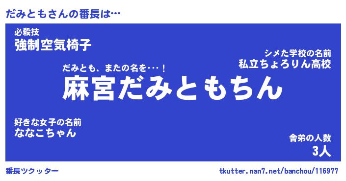 | ツイッター | だみともさんのツイッターID『dendenmushi_nyan』 |
