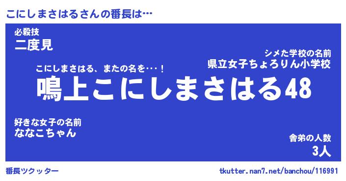 | 2回繰り返すあだ名 | 『こにこに』『ここにに』『ぬれぬれ』 |