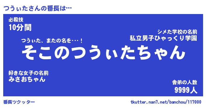 | 意味不明あだ名 | 『ペロリンつうぃた』『永久保存つうぃた』 |