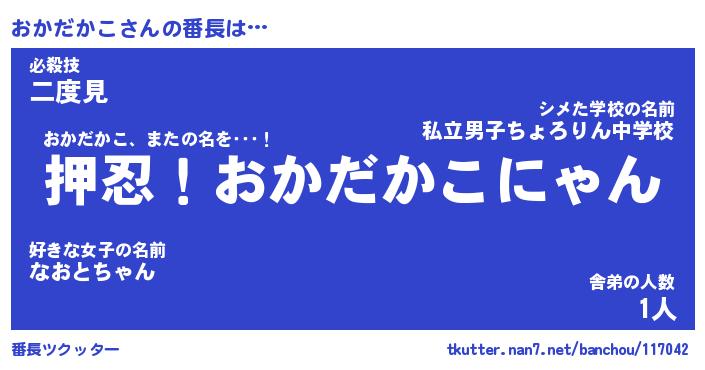 | 2回繰り返すあだ名 | 『おかおか』『おおかか』『あんあん』 |