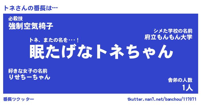 | ヘコむあだ名 | 『トネにー』『つくし』『トネっ子』 |