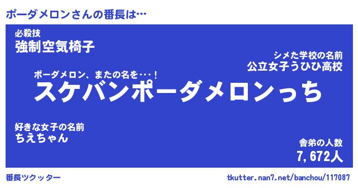 | 男性向けラノベタイトル風あだ名 | 『ポーダメロンアートオンライン』 |