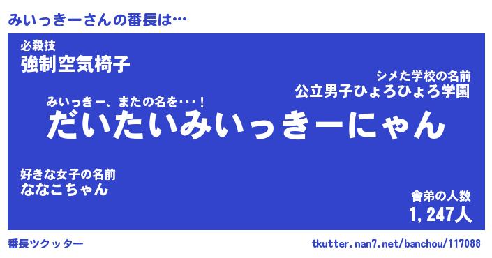 | 肩書あだ名 | 『みいっきー社長令嬢』『みいっきー班長』 |