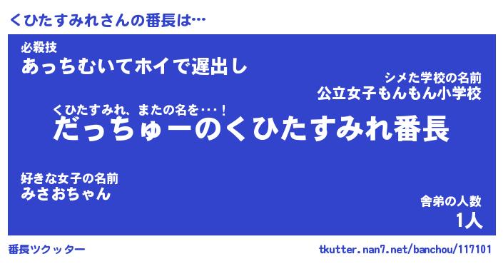 | ヘコむあだ名 | 『くひにー』『牛乳』『くひ太郎』 |