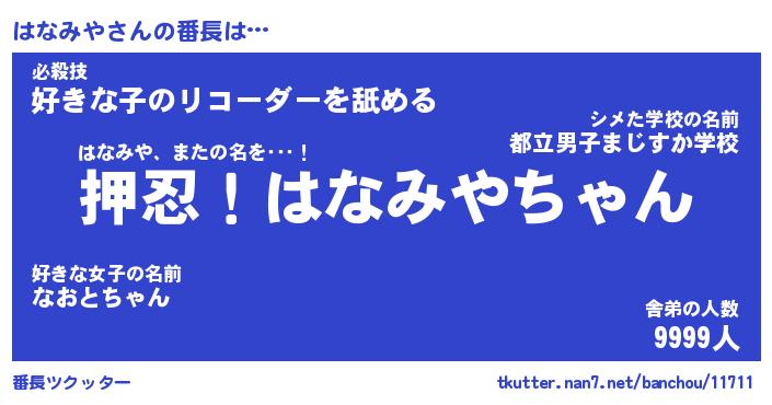 | ヒーロー風カッコイイあだ名 | 『スーパーハナミヤ』『幻影騎士ハナ』 |