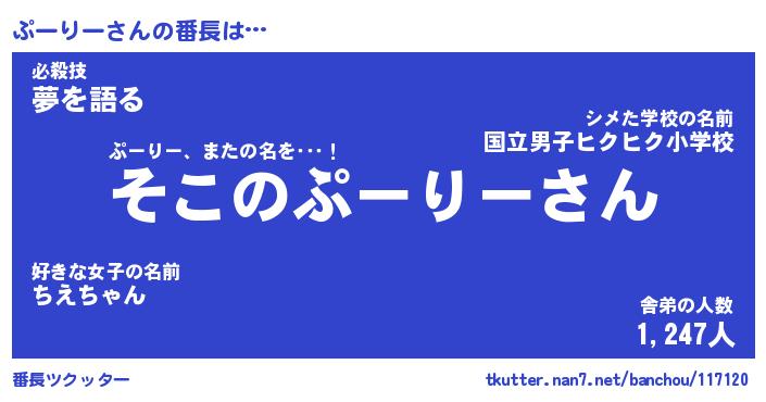 | 男性向けラノベタイトル風あだ名 | 『ぷーりーの憂鬱』 |