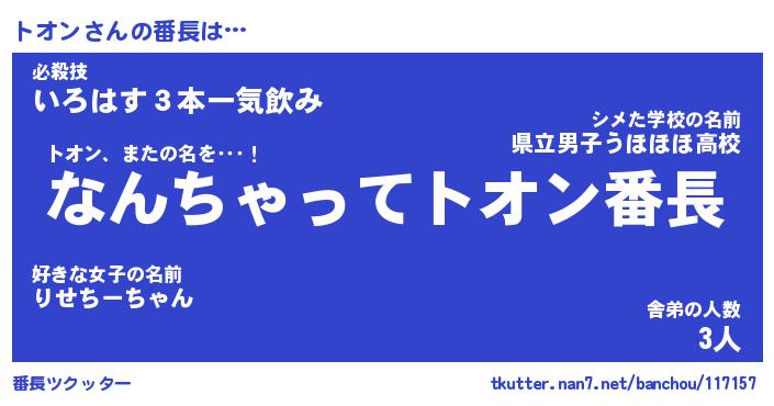 | ヒーロー風カッコイイあだ名 | 『スーパートオン』『ウルトラトオンマン』 |
