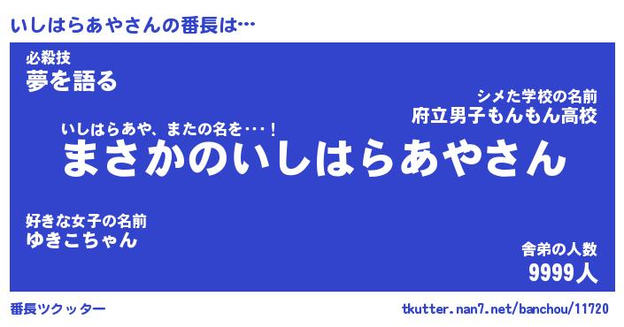 | ヒーロー風カッコイイあだ名 | 『スーパーイシハラアヤ』『天弓騎士イシ』 |