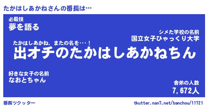 | 女子向けラノベタイトル風あだ名 | 『(仮)たかはしあかねのやんごとなき事情』 |