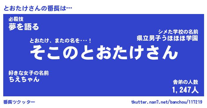 | ピコ太郎風あだ名 | 『トコ六郎』『ピト十郎』『トオ二郎』 |