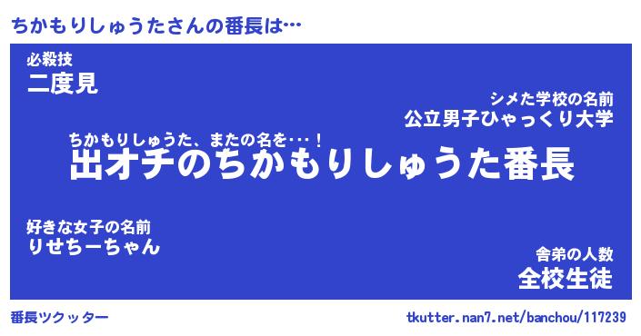 | 肩書あだ名 | 『ちかもりしゅうた社長』 |
